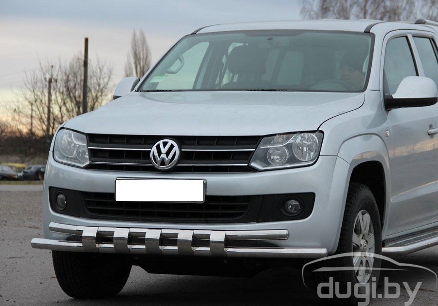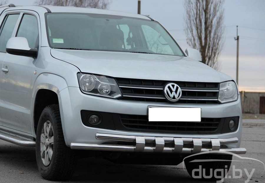 Защита переднего бампера труба двойная для Volkswagen Amarok предназначен для защиты кузова автомобиля при езде по пересеченной местности, а также от различного рода столкновений.
