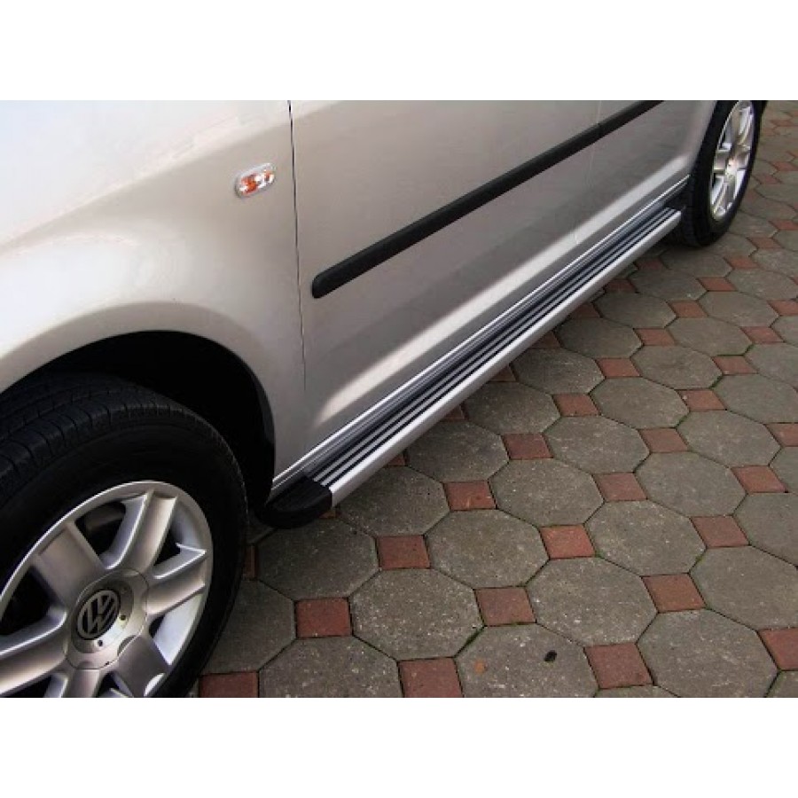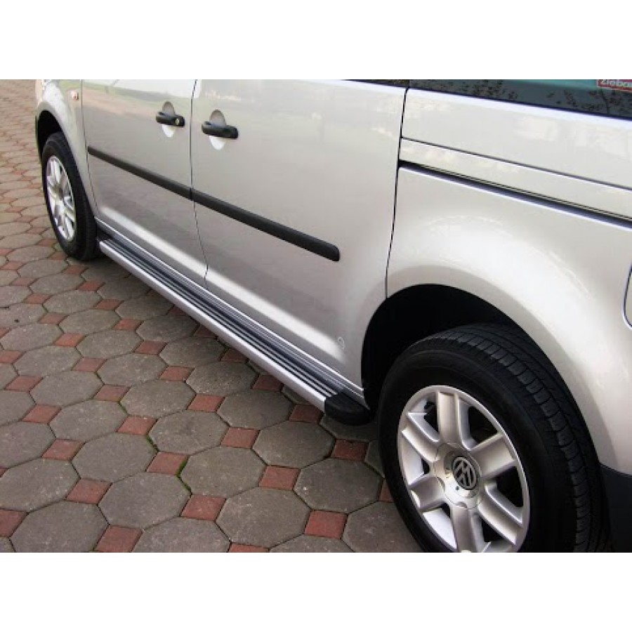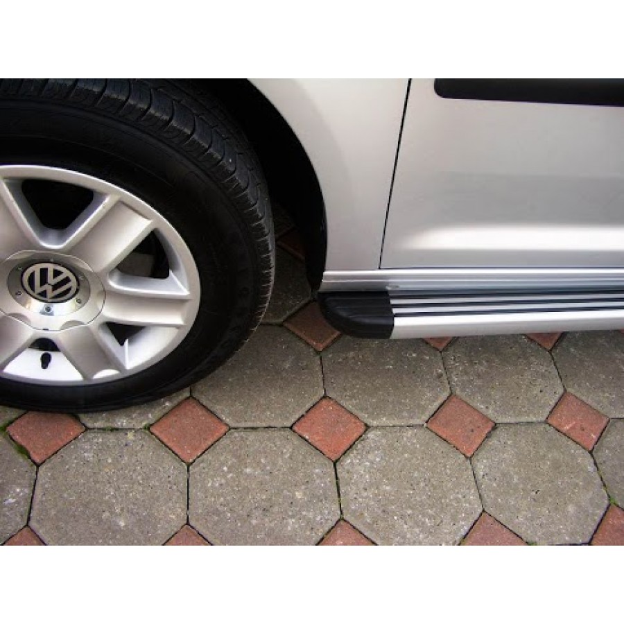 Боковые алюминиевые подножки пороги для Volkswagen Caddy предназначены для защиты боковых повреждений автомобиля, а также для удобства посадки и высадки пассажиров.