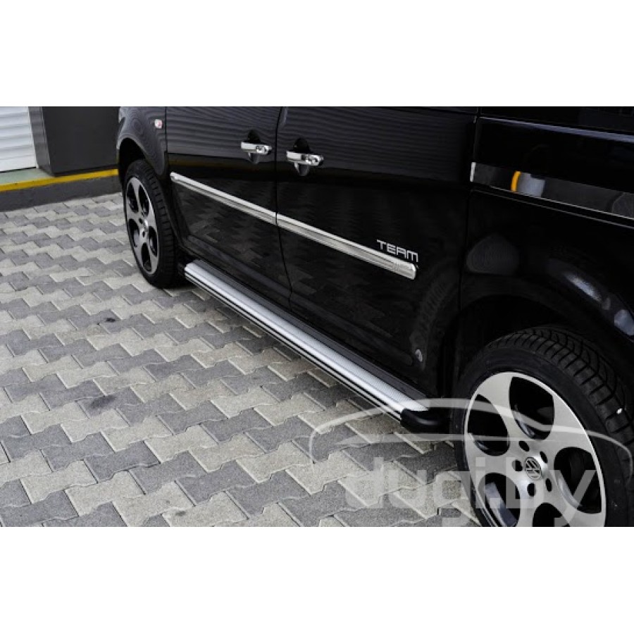 Боковые алюминиевые подножки пороги для Volkswagen Caddy предназначены для защиты боковых повреждений автомобиля, а также для удобства посадки и высадки пассажиров.