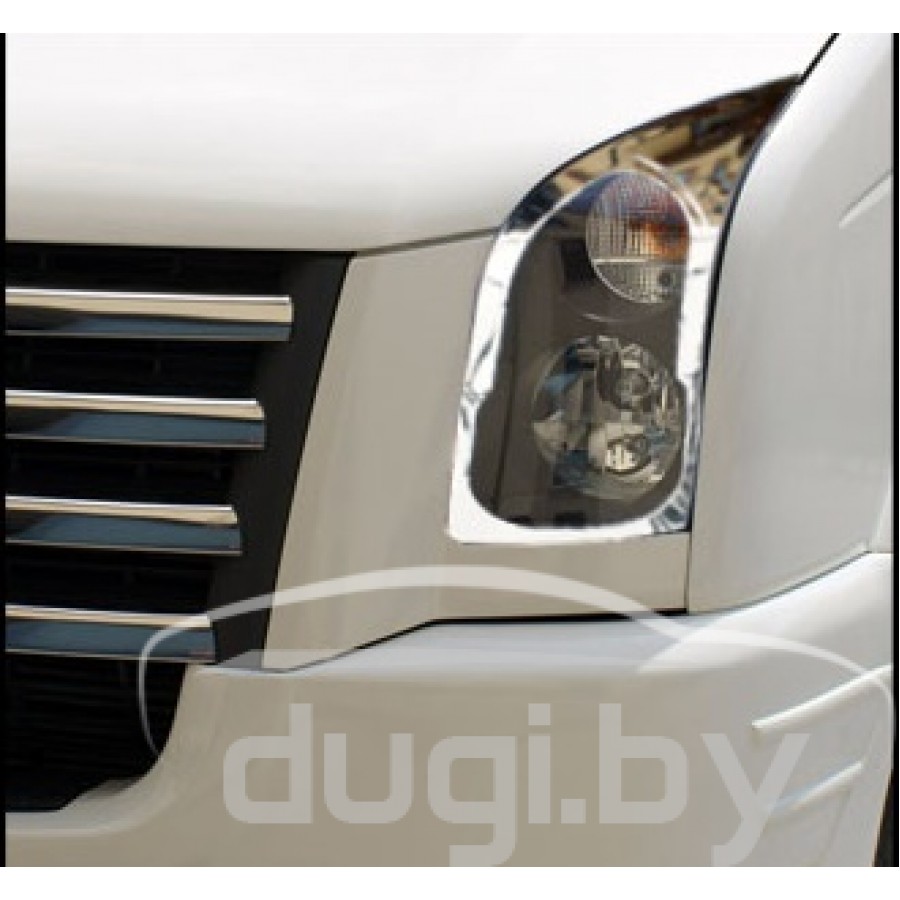 Оригинальные декоративные хромированные накладки на передние фонари для Фольксваген Крафтер изготовлены из высококачественной нержавеющей стали марки AISI 304.