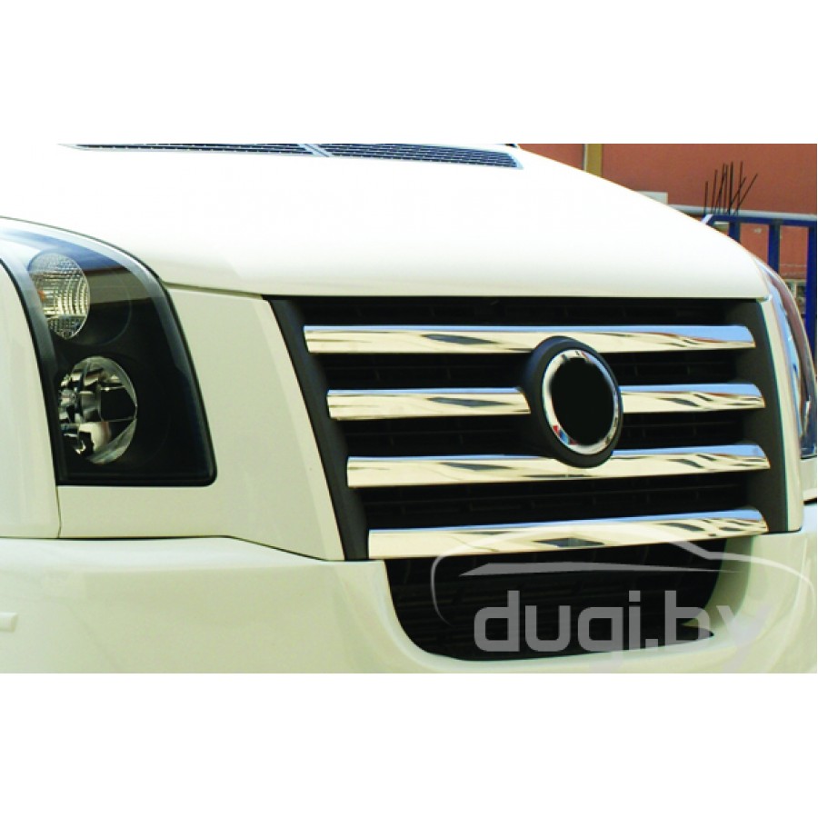 Оригинальные декоративные хромированные накладки на решетку радиатора для Фольксваген Крафтер изготовлены из высококачественной нержавеющей стали марки AISI 304.