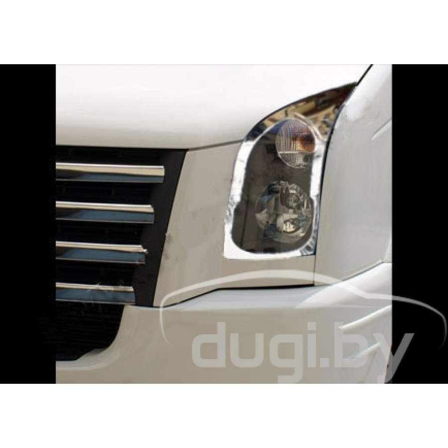 Оригинальные декоративные хромированные накладки на передние фонари для Фольксваген Крафтер изготовлены из высококачественной нержавеющей стали марки AISI 304.