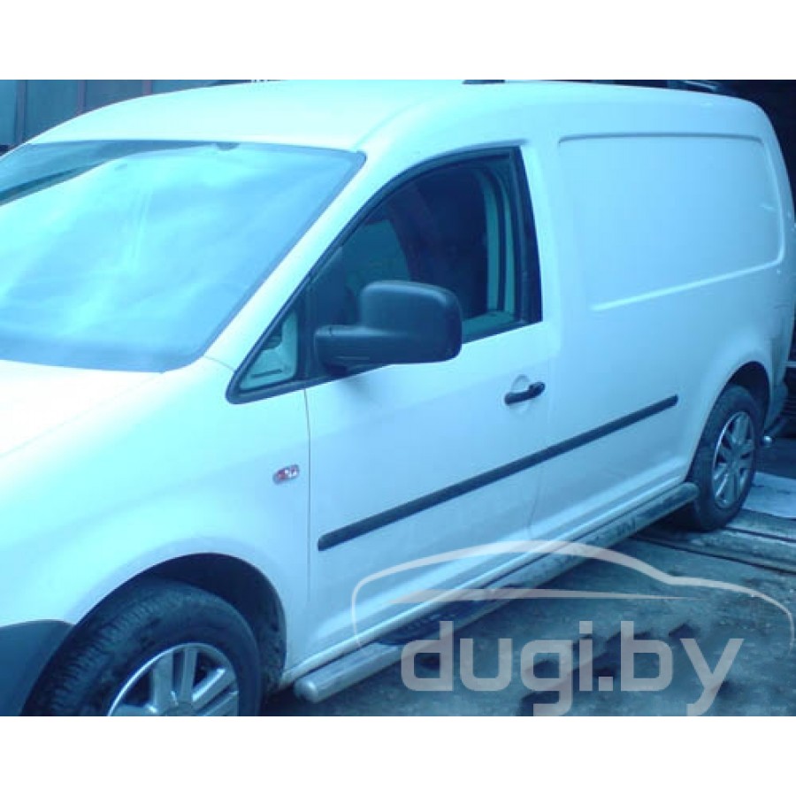 Боковые подножки (трубы) длинная база для Volkswagen Caddy предназначены для защиты боковых повреждений автомобиля, а также для удобства посадки и высадки пассажиров.