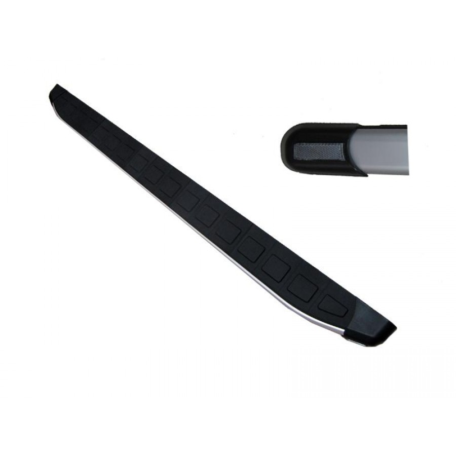 Боковые алюминиевые подножки (пороги) "ALYANS" с пластмассовой накладкой для Volkswagen Caravelle T5 предназначены для защиты боковых повреждений автомобиля, а также для удобства посадки и высадки пассажиров в Volkswagen Caravelle T5.