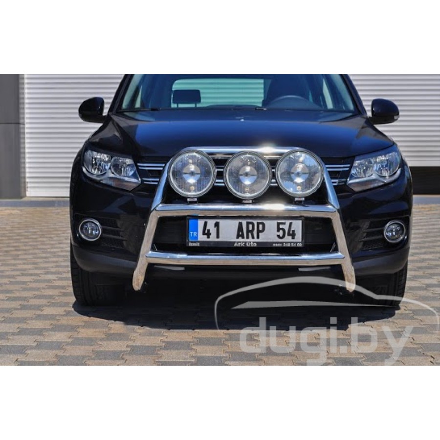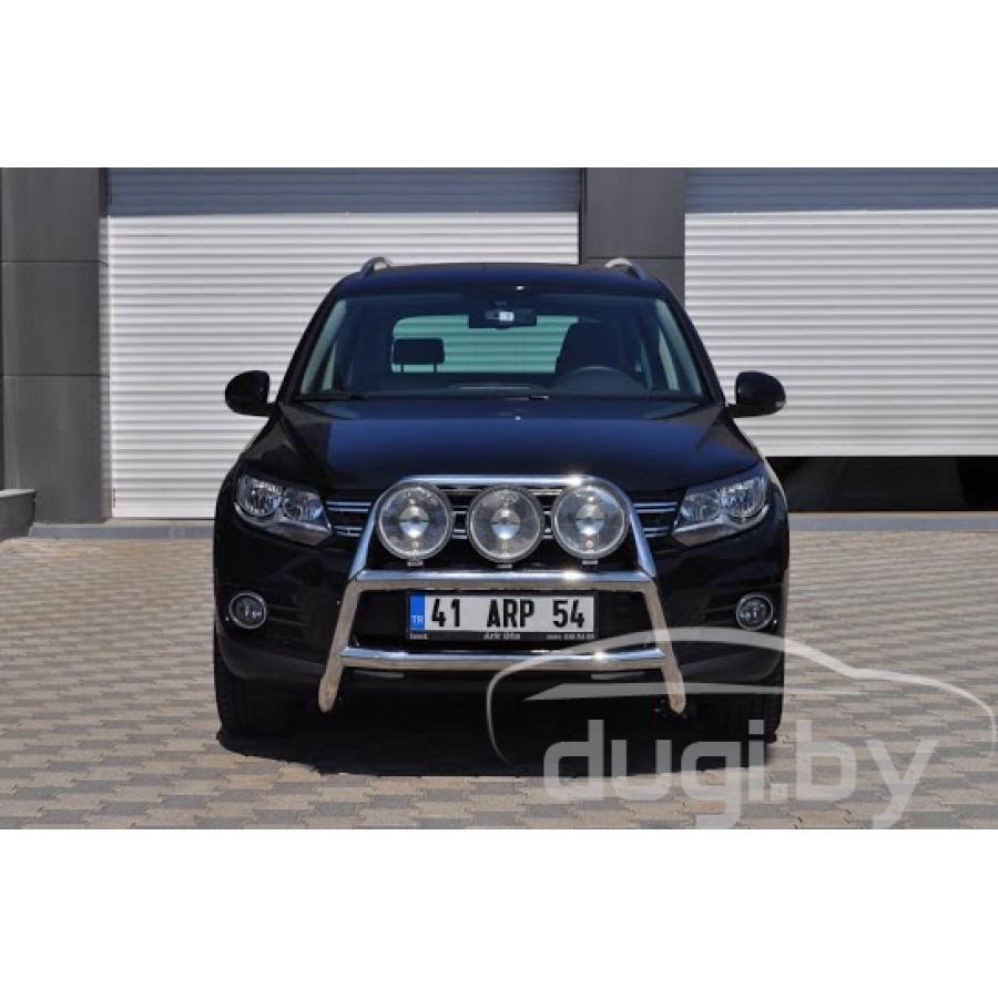 Защита переднего бампера (кенгурятник) из нержавеющей стали - подчеркнет эстетический вид Вашего Volkswagen Tiguan.