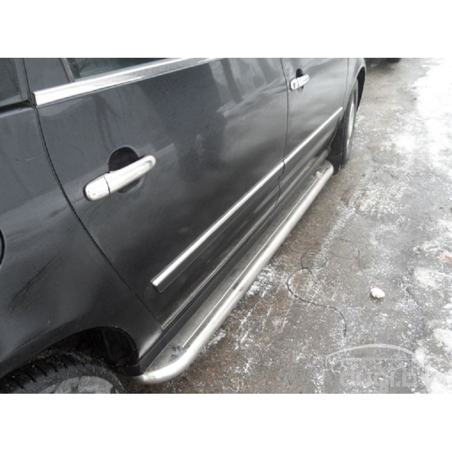 Боковые пороги (площадки) из нержавеющей стали для Volkswagen Touran предназначены для защиты боковых повреждений, а также для удобства посадки и высадки пасажиров.