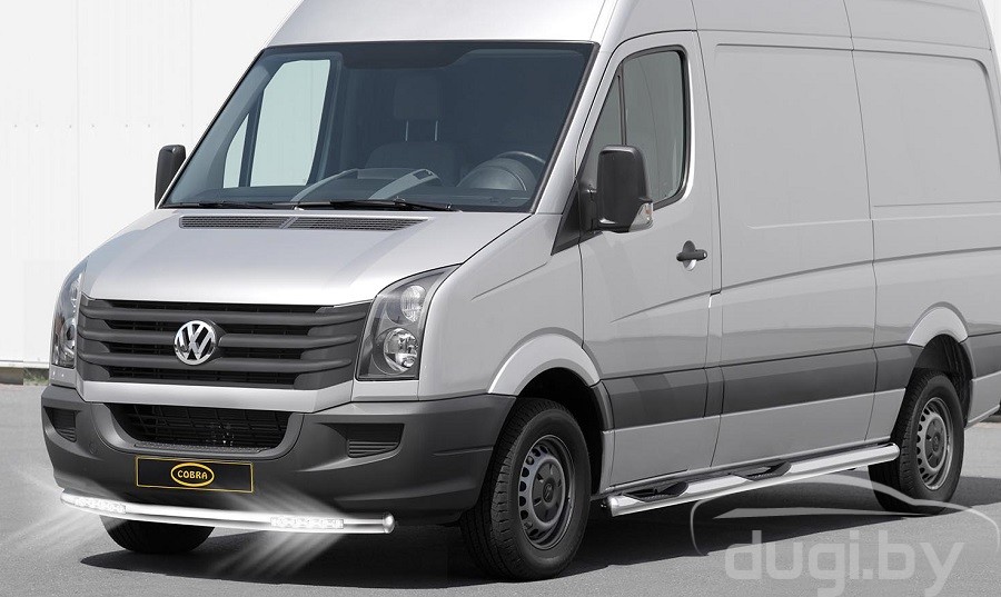 Защита переднего бампера передняя одинарная труба со светодиодными дневными ходовыми огнями Ø 60 мм для Volkswagen Crafter.