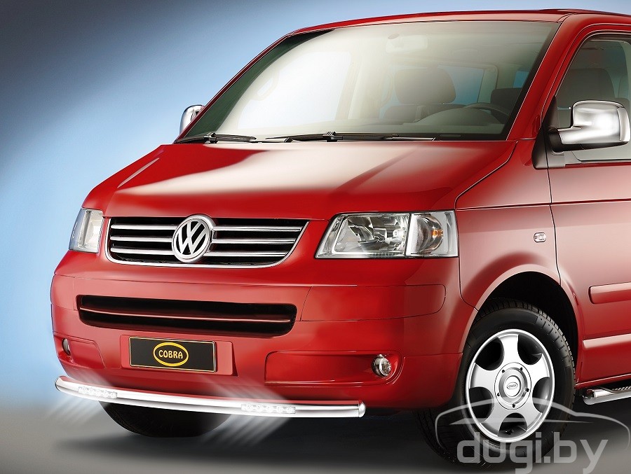 Защита переднего бампера передняя одинарная труба со светодиодными дневными ходовыми огнями Ø 60 мм для Volkswagen T5 Caravelle\Multivan\Transporter.