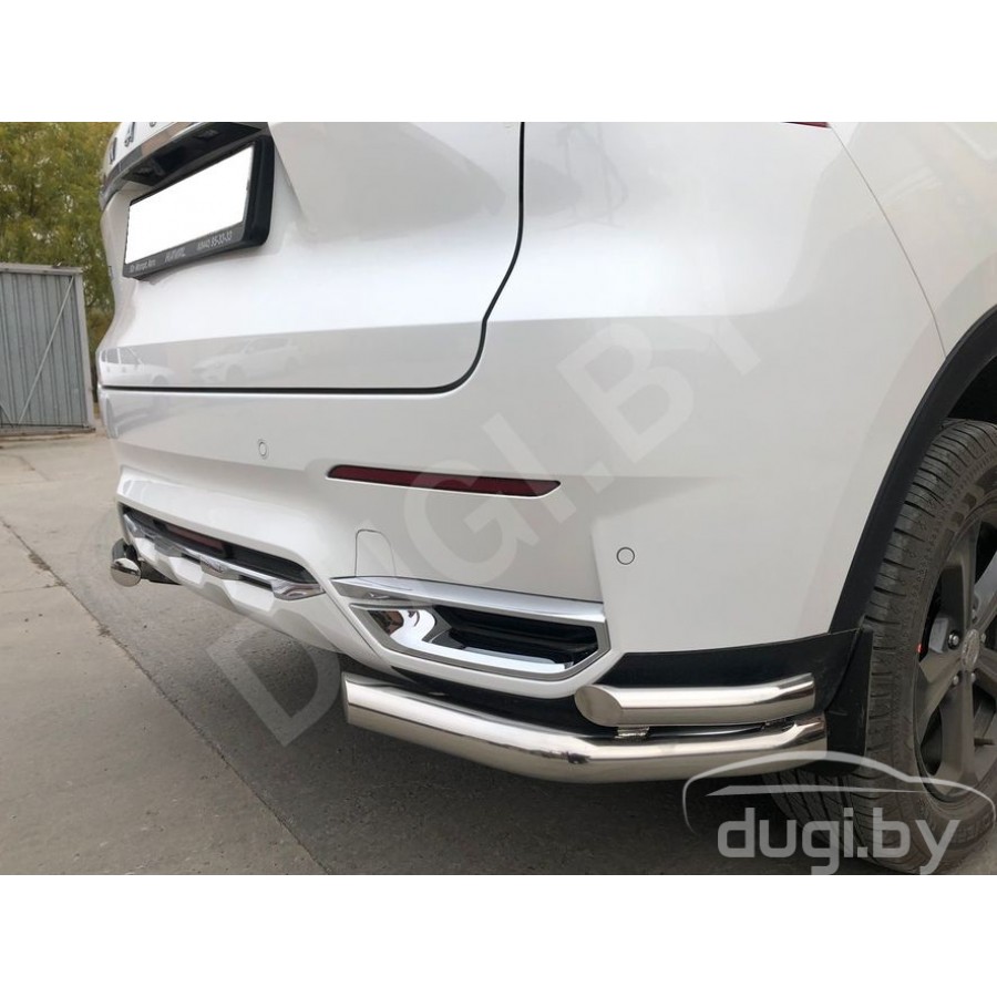 Защита заднего бампера двойные углы Mars D60/42 для HAVAL F7 с 2018-н.в. от эксклюзивного производителя автотюнинга i-Tuning из нержавеющей стали марки AISI 304, предназначены для защиты кузова автомобиля при езде по пересеченной местности, а также от различного рода столкновений.