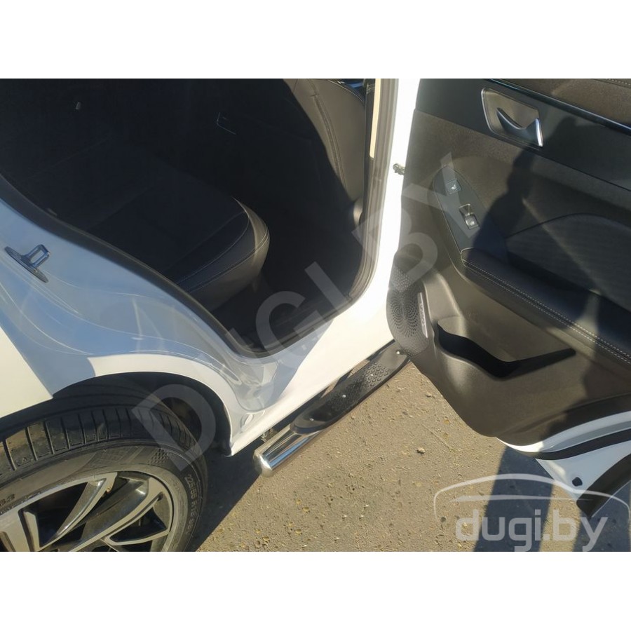 Боковые подножки трубы DELUX D93 для для HAVAL JOLION с 2020-н.в. от эксклюзивного производителя автотюнинга i-Tuning из нержавеющей стали марки AISI 304, предназначены для защиты от боковых повреждений автомобиля, а также для удобства посадки и высадки пассажиров.