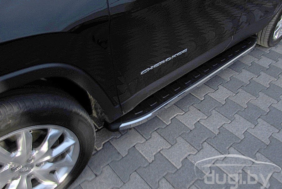 Защита боковых порогов состоит из алюминиевого профиля и боковой панели из алюминия покрытой хромовым напылением. С двух сторон подножки закрыты торцевыми пластиками из ABS. Верхняя часть порога (подножки) изготовлена из высококачественного ABS пластика. Износоустойчива к различным климатическим условиям. Подножки отлично вписываются в аэродинамический внешний вид и дополняют оригинальный дизайн Вашего Jeep Cherokee.