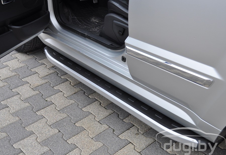 Защита боковых порогов состоит из алюминиевого профиля и боковой панели из алюминия покрытой матовым напылением. С двух сторон подножки закрыты торцевыми пластиками из ABS. Верхняя часть порога (подножки) изготовлена из высококачественного ABS пластика. Износоустойчива к различным климатическим условиям. Подножки отлично вписываются в аэродинамический внешний вид и дополняют оригинальный дизайн Вашего Jeep Grand Cherokee.