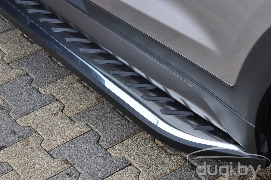 Площадки изготовлены из высококачественного алюминия толщина которого 5см и имеют специальный рельеф противоскольжения по всей поверхности порогов. Подножки просты в установке и не требуют сверления и сварки, в комплекте порогов присутствует схема установки и монтажный комплект креплений.