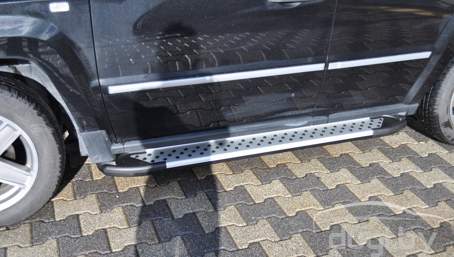 Площадки изготовлены из высококачественного алюминия толщина которого 5см и имеют специальный рельеф противоскольжения по всей поверхности порогов. Подножки просты в установке и не требуют сверления и сварки, в комплекте порогов присутствует схема установки и монтажный комплект креплений.