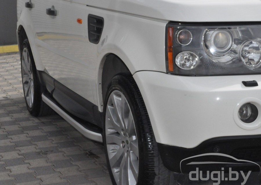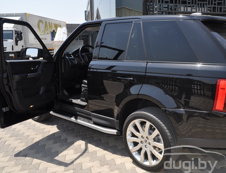 Защита боковых порогов состоит из алюминиевого профиля и боковой панели из алюминия покрытой матовым напылением. С двух сторон подножки закрыты торцевыми пластиками из ABS. Верхняя часть порога (подножки) изготовлена из высококачественного ABS пластика. Износоустойчива к различным климатическим условиям. Подножки отлично вписываются в аэродинамический внешний вид и дополняют оригинальный дизайн Вашего Land Rover Rang Rover Sport.