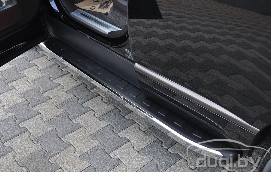 Защита боковых порогов состоит из алюминиевого профиля и боковой панели из алюминия покрытой хромовым напылением. С двух сторон подножки закрыты торцевыми пластиками из ABS. Верхняя часть порога (подножки) изготовлена из высококачественного ABS пластика. Износоустойчива к различным климатическим условиям. Подножки отлично вписываются в аэродинамический внешний вид и дополняют оригинальный дизайн Вашего Land Rover Vogue.